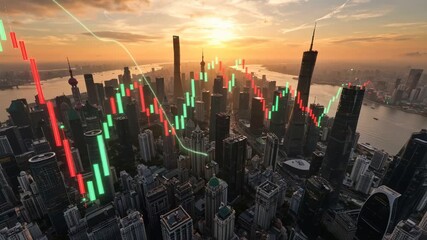 Futuristic Data Visualization Overlaying Urban Skyline Videos