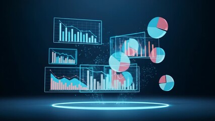 Futuristic Data Visualization With Floating Bar Charts And Graphs Videos
