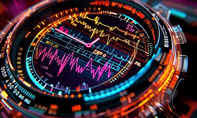Futuristic Data Visualization With Neon Clock And Graphs Videos