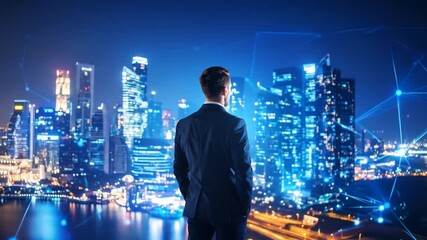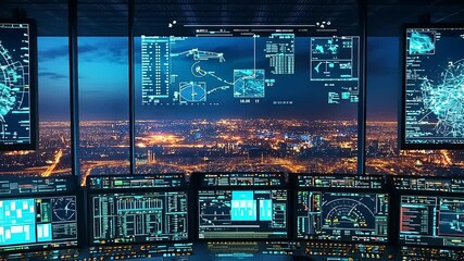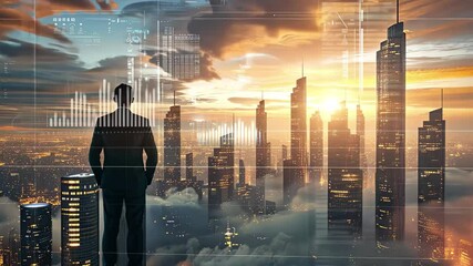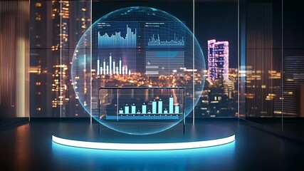 Futuristic Data Visualizations Overlooking Urban Skyline Videos