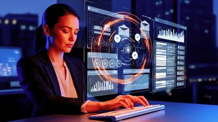 Futuristic Digital Analytics Interface In Modern Office Setting Videos