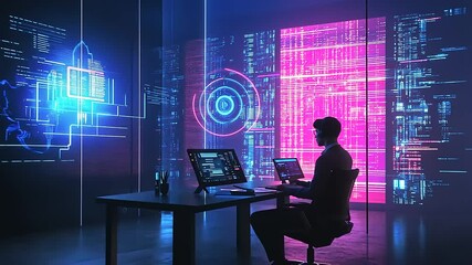 Futuristic Digital Analytics Interface In Modern Office Setting Videos