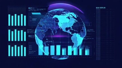 Futuristic Digital Analytics Interface With Rotating Globe Videos