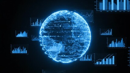Futuristic Digital Bar Graphs On Global Network Background Videos