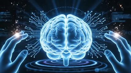 Futuristic Digital Brain With Data Waves On Blue Background Videos
