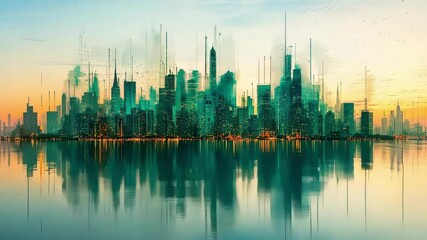 Futuristic Digital Cityscape Animation With Financial Elements Videos