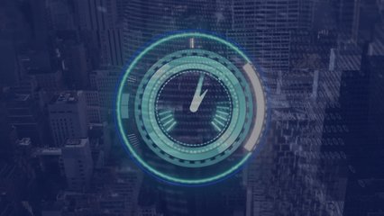 Futuristic Digital Clock Animation Over Cityscape Videos