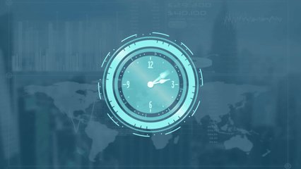 Futuristic Digital Clock Interface With Global Data Overlay Videos