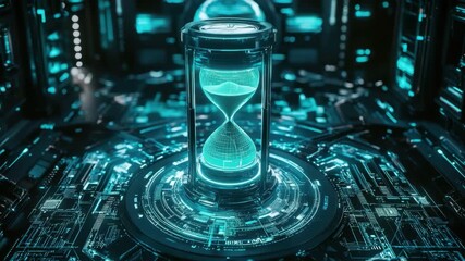 Futuristic Digital Clock With Data Integration On Blue Videos