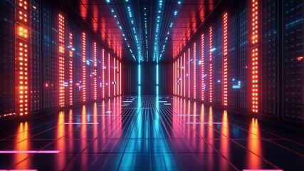 Futuristic Digital Code Panels In Virtual Network Tunnel Videos