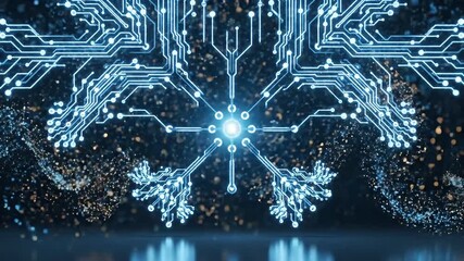 Futuristic Digital Code With Snowflakes On Blue Background Videos