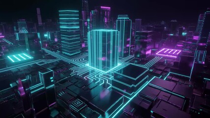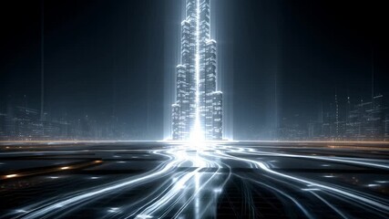 Futuristic Digital Data Flow On Building Abstract Videos