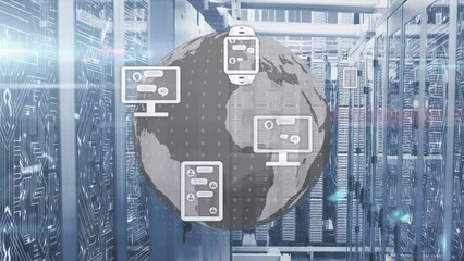 Futuristic Digital Data Globes Over Server Network Graphic Videos