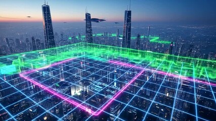 Futuristic Digital Data Landscape With Grid Overlay Videos