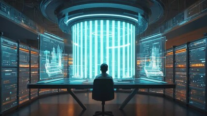 Futuristic Digital Data Processing In Workplace Environment Videos