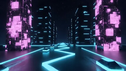 Futuristic Digital Data Scene With Virtual Cityscape Videos