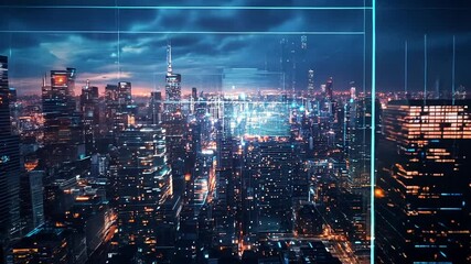 Futuristic Digital Data Streams Overlaying Urban Background Videos