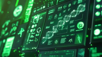 Futuristic Digital Dna Interface With Scientific Graphics Videos