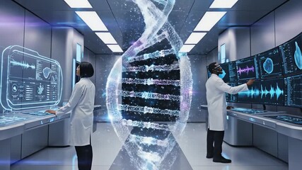 Futuristic Digital Dna Strand Visualization With Data Processing Videos