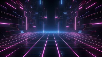 Futuristic Digital Grid With Depth Perspective Videos
