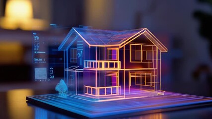 Futuristic Digital Interface Display With Virtual House Design Videos