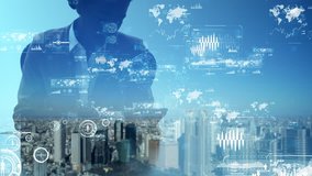 Futuristic Digital Interface Double Exposure Cityscape Videos