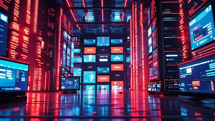 Futuristic Digital Interface On Multiple Monitors In Tech Store Videos