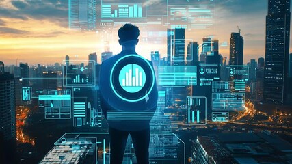 Futuristic Digital Interface Over Cityscape Videos