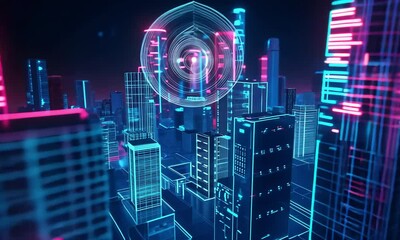 Futuristic Digital Interface Overlay On City Skyline Videos