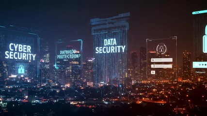 Futuristic Digital Interface Overlay On Cityscape Videos