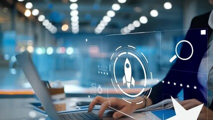 Futuristic Digital Interface Overlaying Modern Office Videos