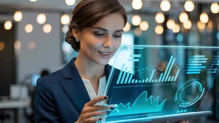 Futuristic Digital Interface With Businesswoman And Data Visualization Videos