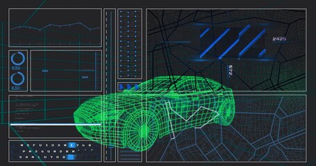 Futuristic Digital Interface With Car Wireframe And Data Visualizations Videos