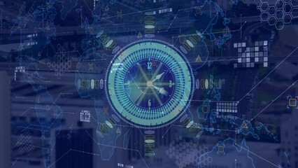 Futuristic Digital Interface With Clock And Global Data Maps Videos