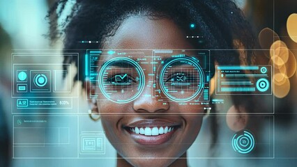 Futuristic Digital Interface With Data And Face Overlay Videos