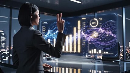 Futuristic Digital Interface With Data Charts And Globe Videos