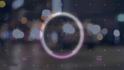 Futuristic Digital Interface With Data Visualization Over Cityscape Videos