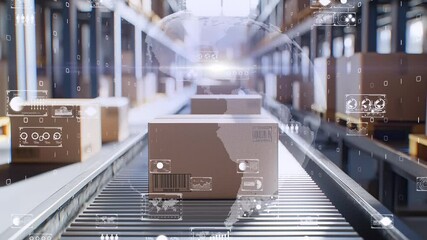 Futuristic Digital Interface With Global Data Overlay In Warehouse Videos