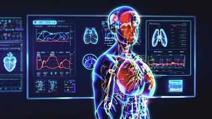 Futuristic Digital Interface With Human Body And Brain Diagram Videos