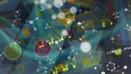 Futuristic Digital Interface With Molecular Animation Over Server Videos