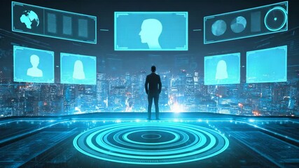 Futuristic Digital Interface With Neon Cityscape Videos