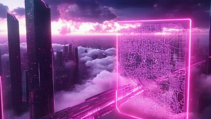 Futuristic Digital Interface With Neon Cityscape Videos