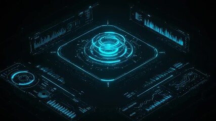 Futuristic Digital Interface With Neon Scope And Data Videos