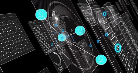 Futuristic Digital Interface With Rotating Data Visualizations Videos