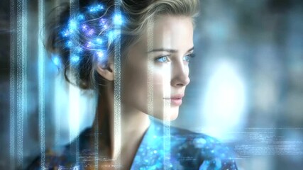 Futuristic Digital Landscape With Face And Binary Code Overlay Videos
