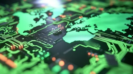 Futuristic Digital Map With Circuit Board Pattern Videos
