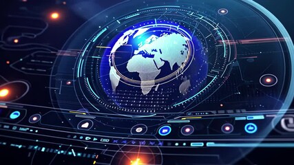 Futuristic Digital Navigation Interface Over Earth Videos