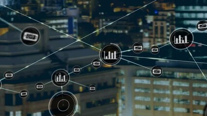 Futuristic Digital Network And Interface Elements In Night City Videos
