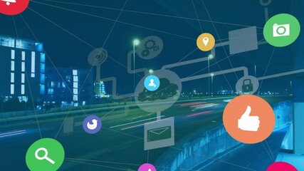 Futuristic Digital Network And Interface Elements In Night City Videos