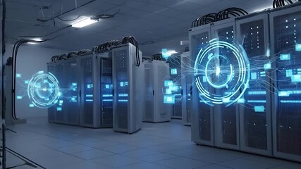 Futuristic Digital Network Overlay On Data Center Servers Videos
